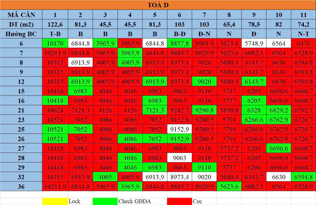 – Diện tích căn hộ từ: 45,6m2 – 65,5m2 – 67,8m2 – 74,2m2 – 81m2 – 103m2 – 122,6m2